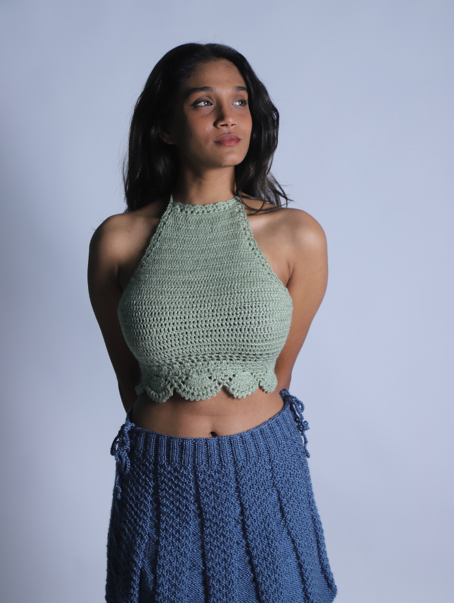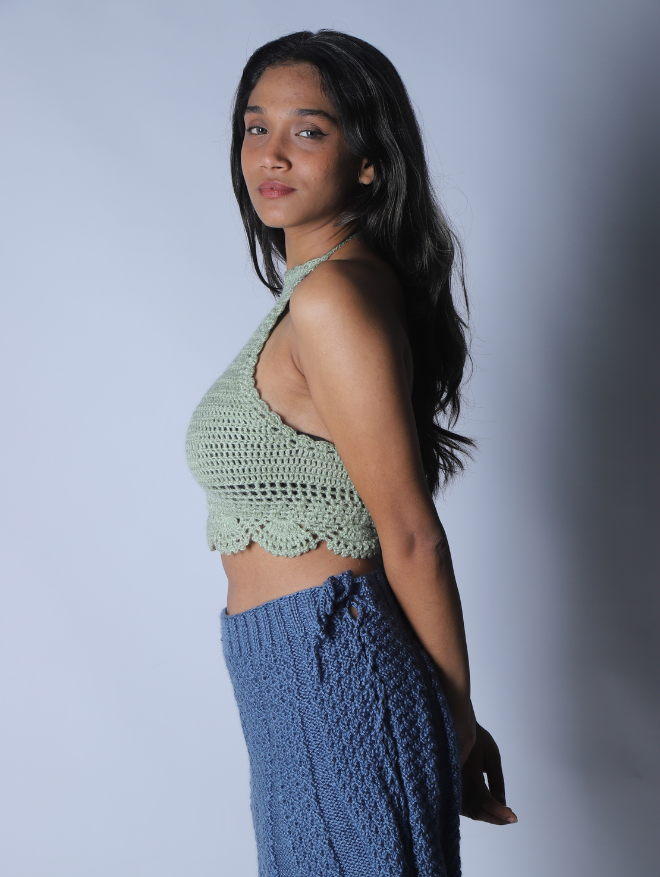 Embrace effortless elegance with our Olive Breeze Halter, a delicately handcrafted crochet top designed for comfort and style. Made from premium, breathable cotton yarn, this halter features a beautifully intricate open-knit pattern, scalloped edges, and a flattering cropped fit.