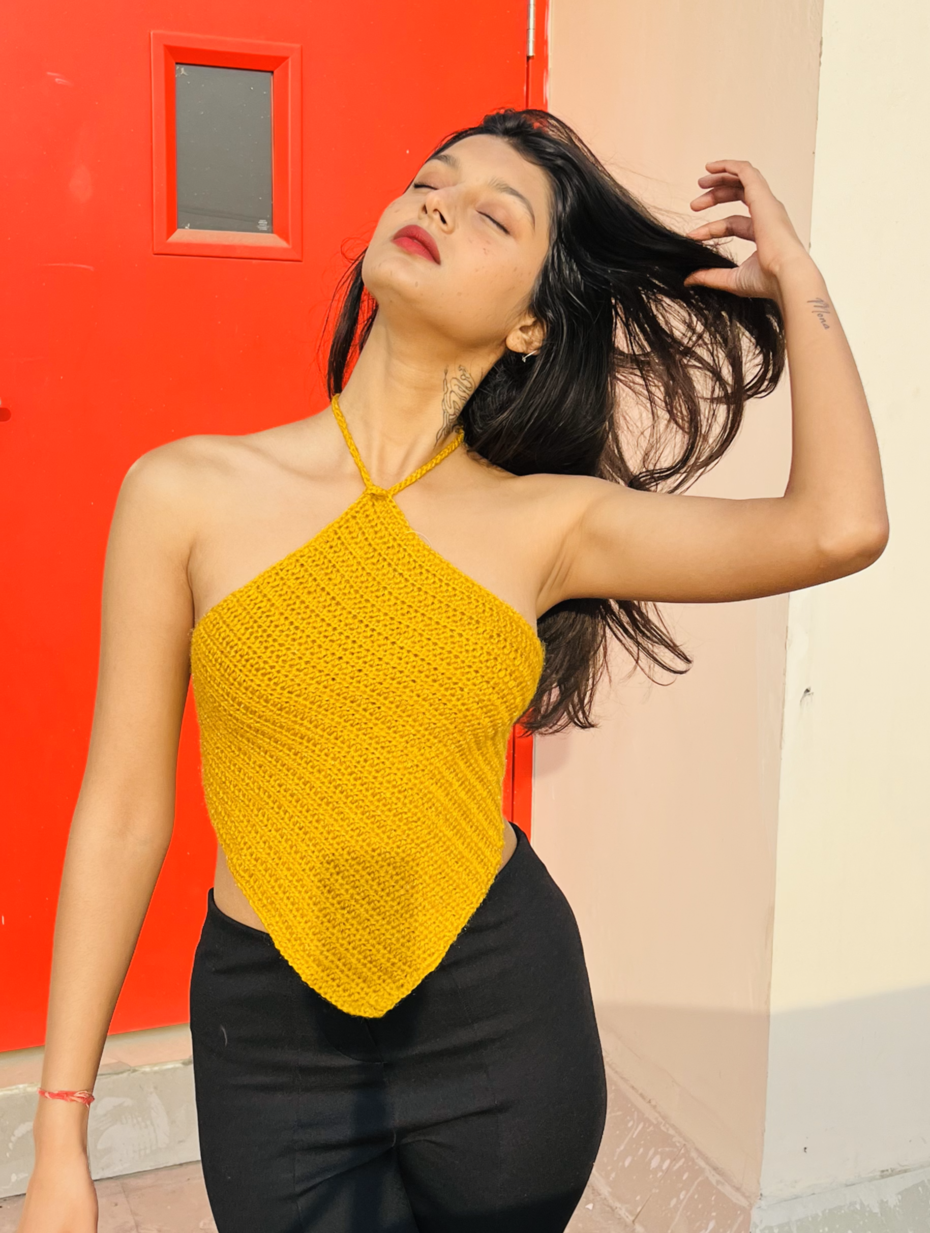 Radiate confidence and charm with our handcrafted Sunburst Halter Top, inspired by the warm hues of a golden sunrise. This elegant, lightweight crochet top is designed to make you shine, whether you’re soaking up the summer sun or layering for a boho-chic look.
